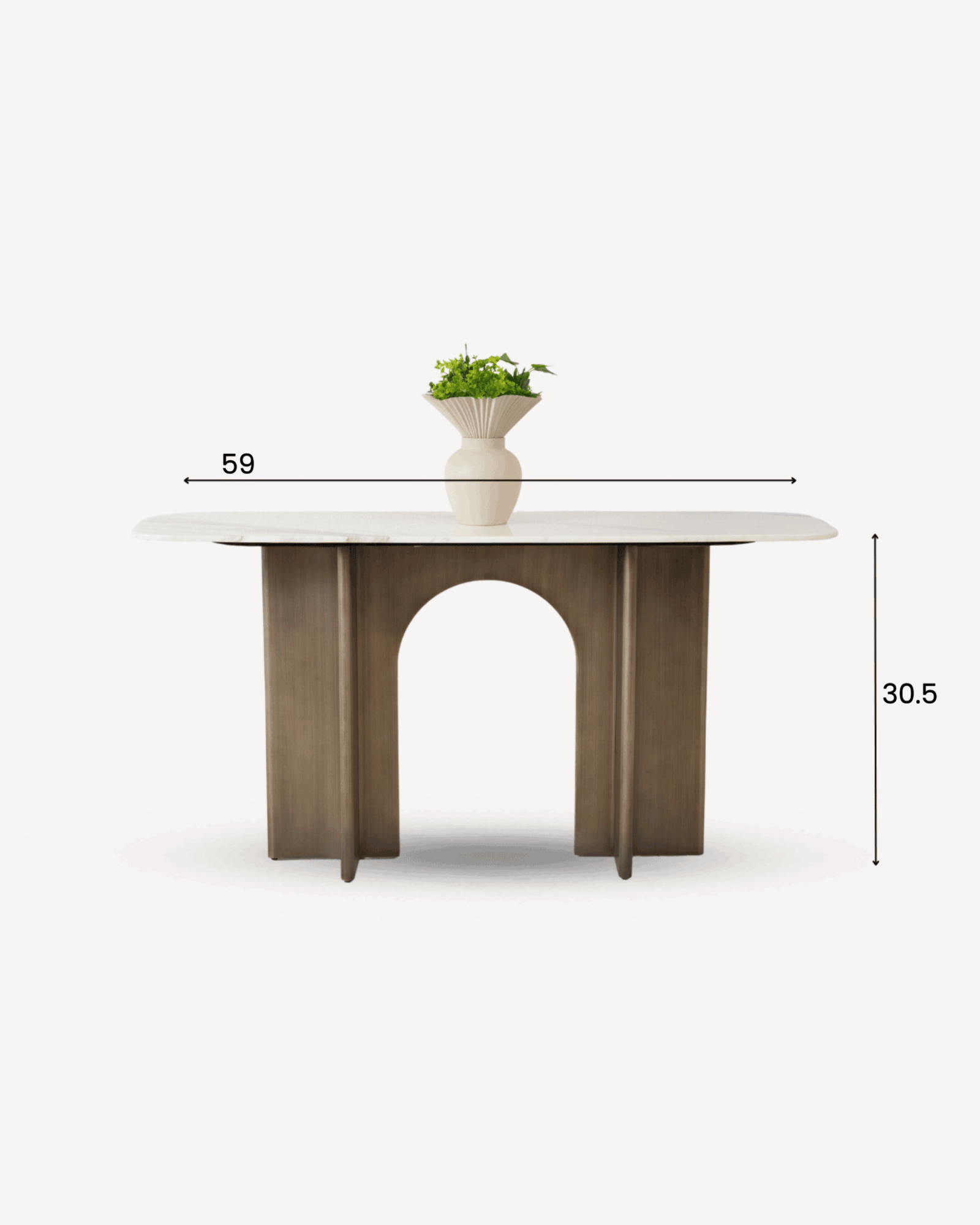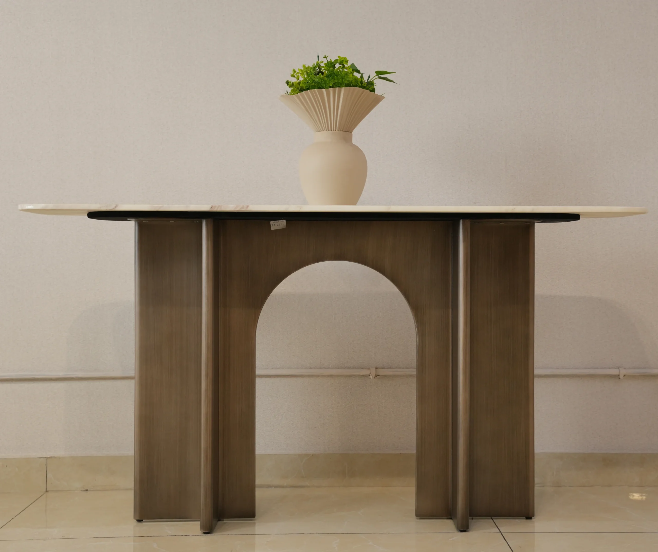 Transform your interior with a console that blends soft curves, architectural symmetry, and a smooth stone surface. Perfect for hallways, living rooms, or statement decor spaces.