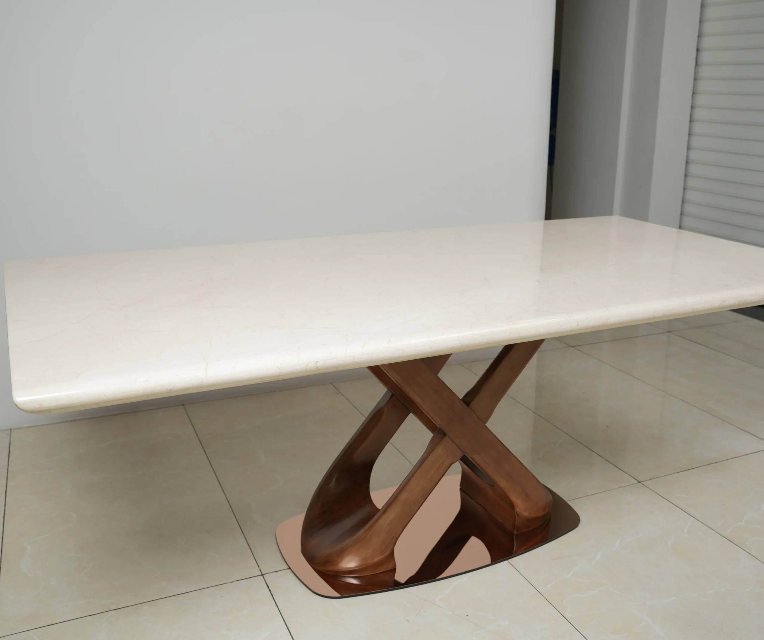 Cream Marble Top, Warm Wood Base