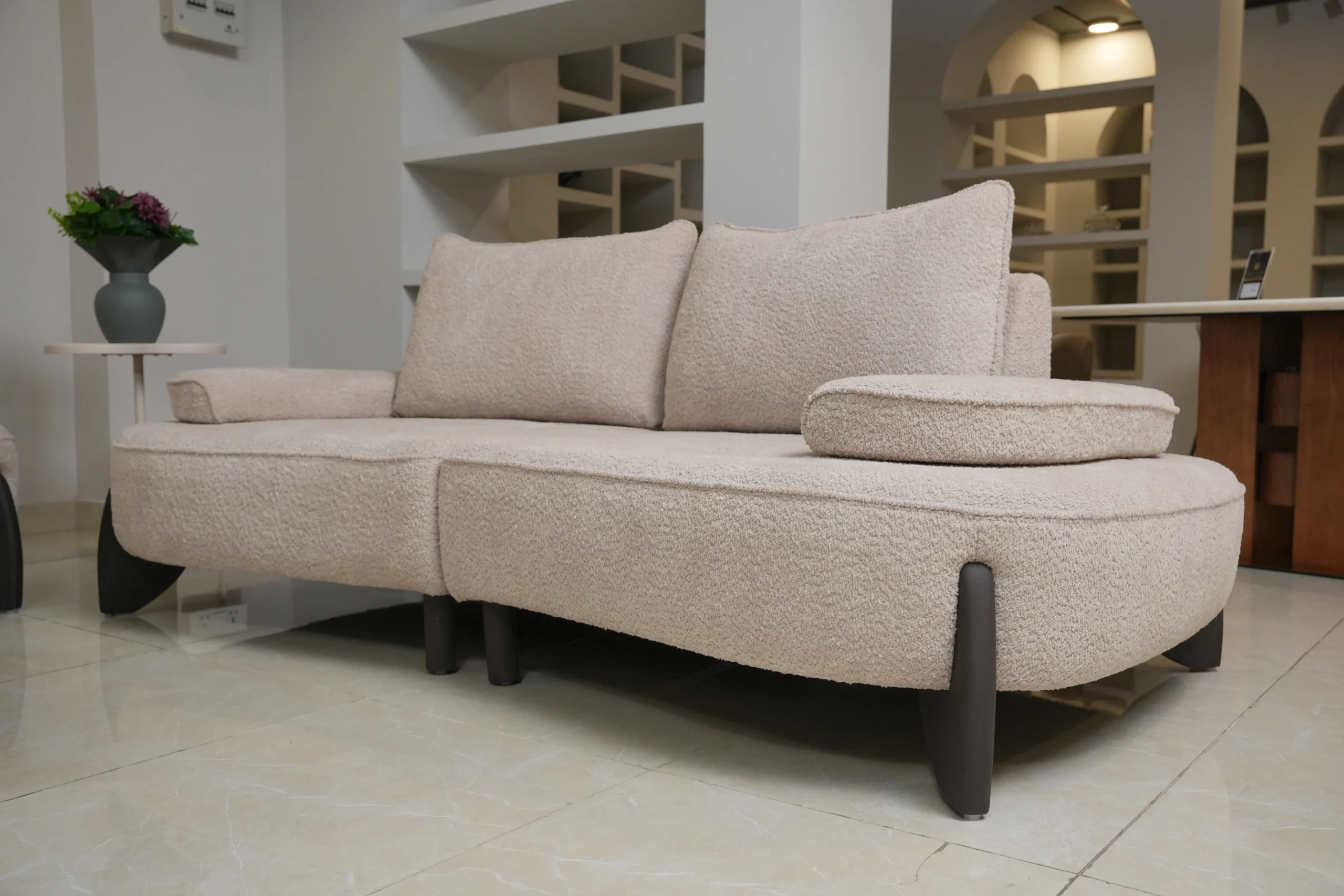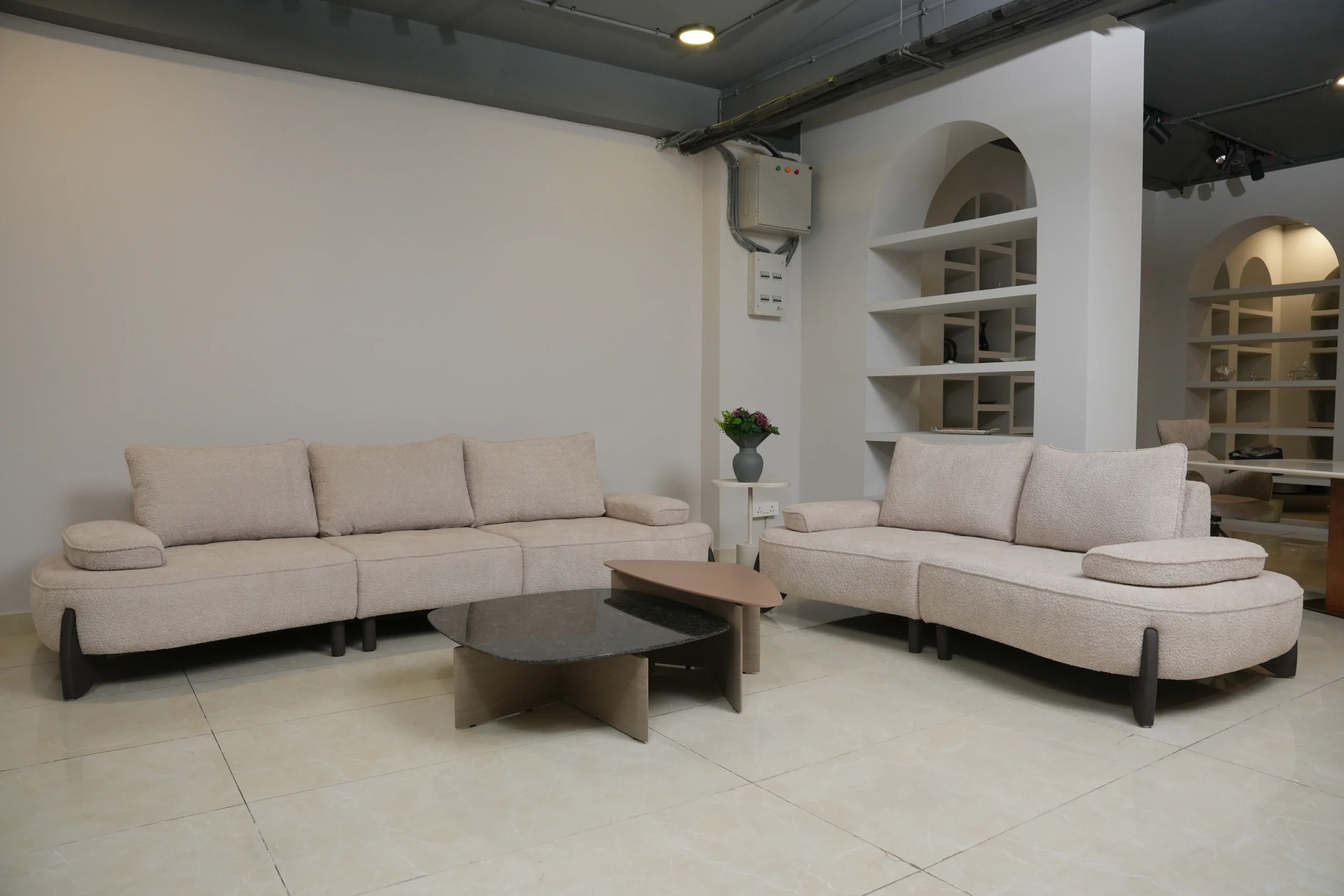 Enhance your home with a sofa set that blends smooth contours, supportive cushions, and a soft-toned modern presence. Perfect for family spaces, lounges, and relaxed contemporary interiors.