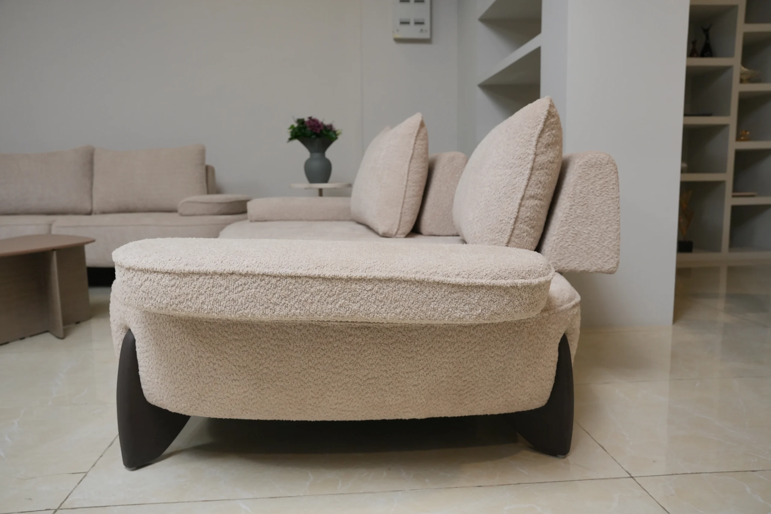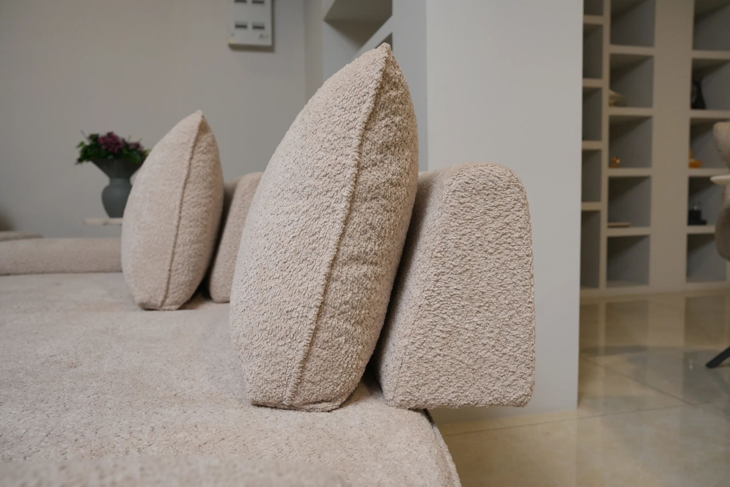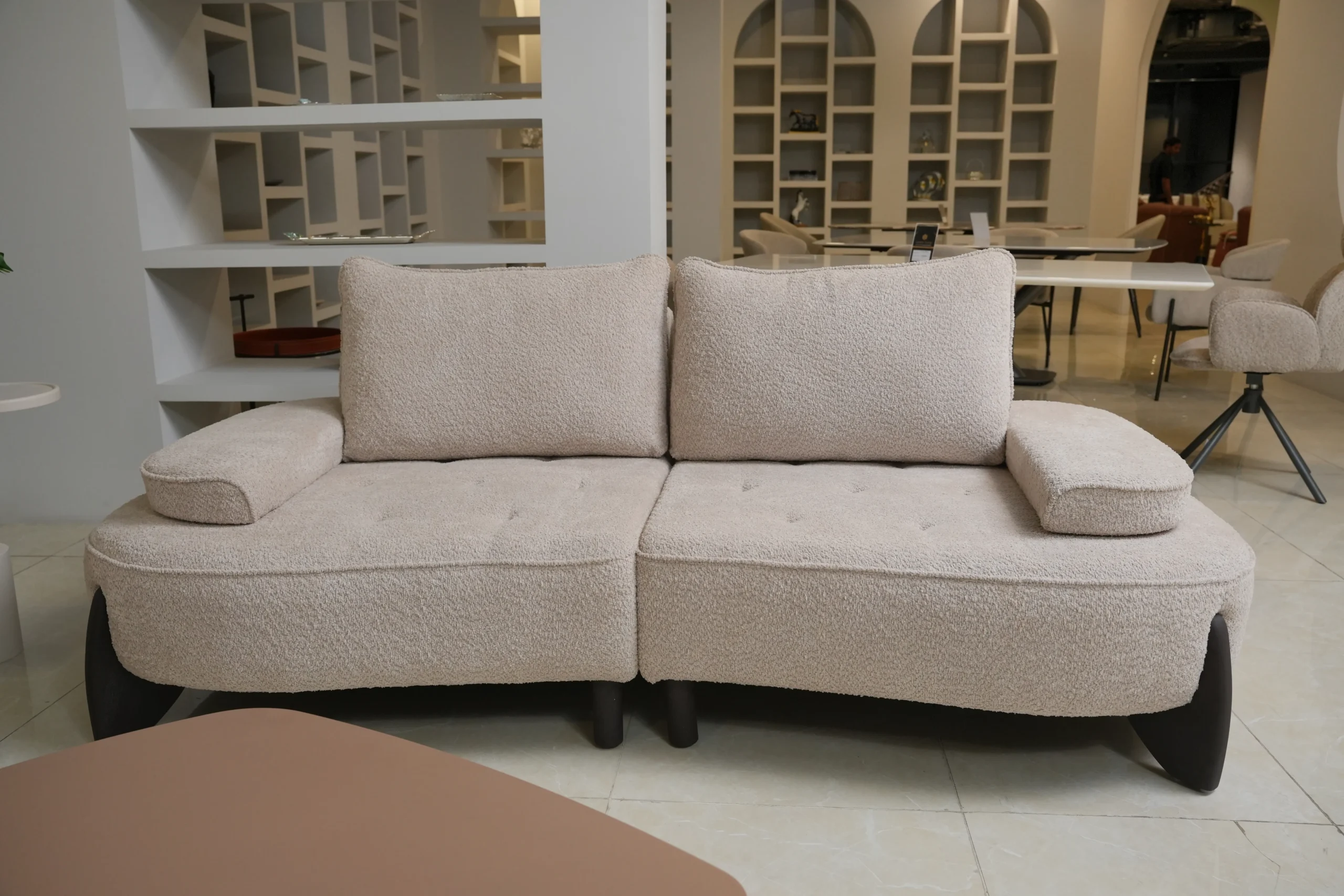 • Soft neutral upholstery crafted for durability, warmth, and timeless interior harmony