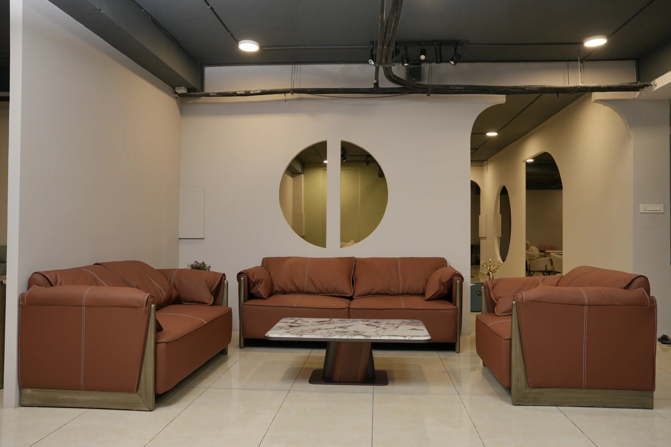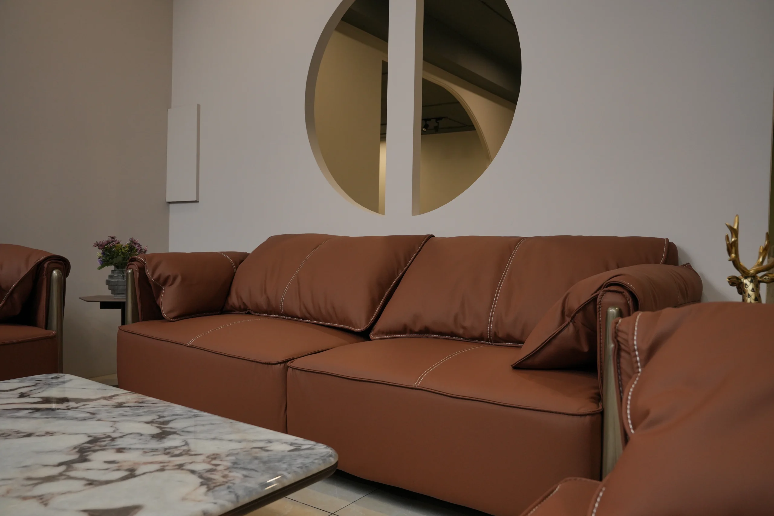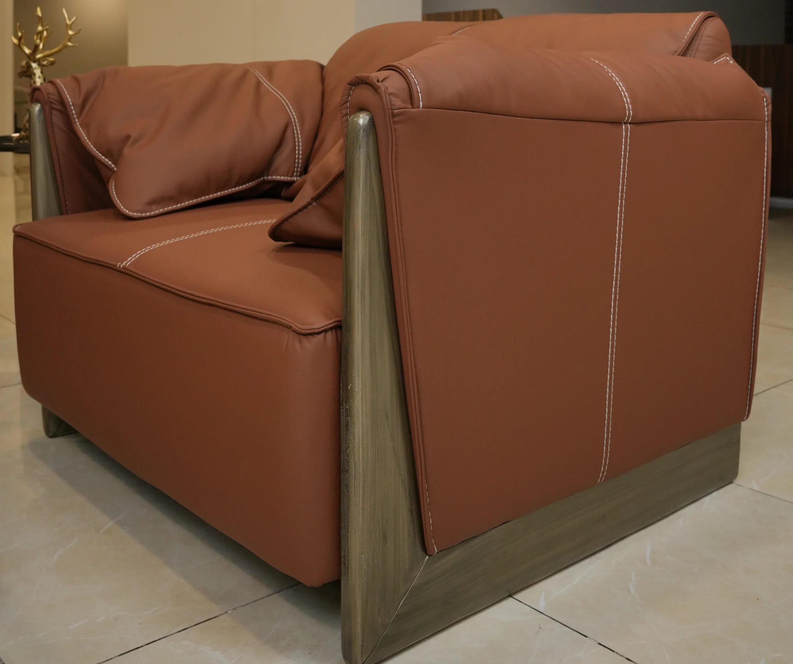 Enhance your home with a sofa set that blends supple leather, structured comfort, and warm contemporary design. Perfect for formal living rooms, lounges, and elevated interior settings.