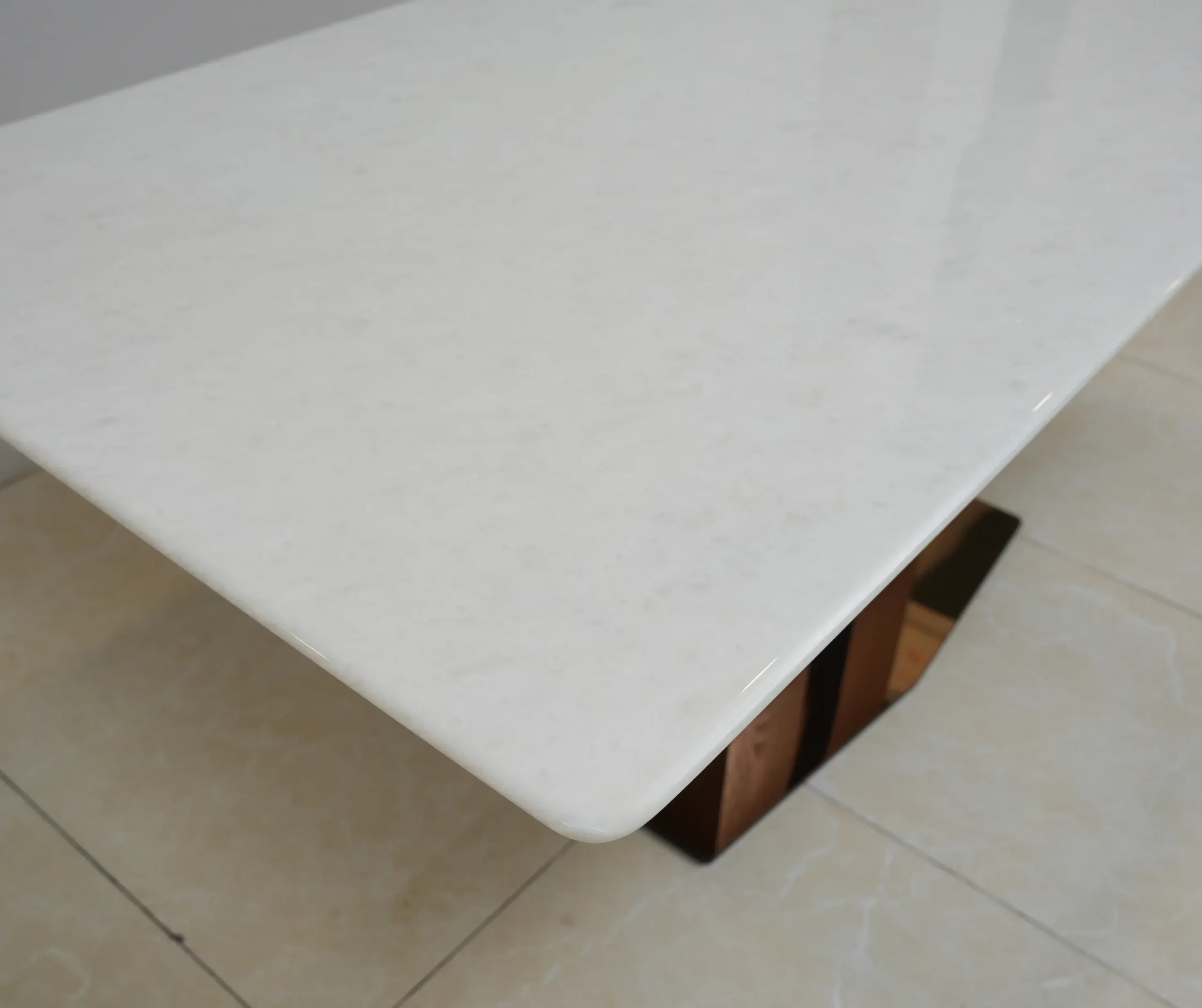 Elevate your dining area with a table that blends clean marble minimalism, warm wooden structure, and a polished contemporary base. Perfect for modern homes, open dining layouts, and sophisticated interiors.